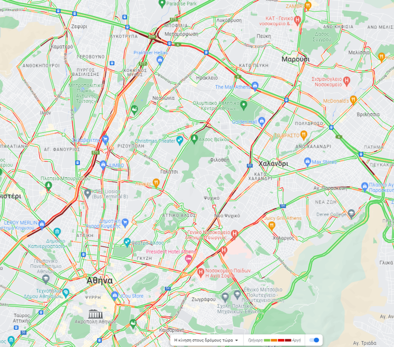 Δείτε στο χάρτη κυκλοφορίας της Τροχαίας πού έχει κίνηση