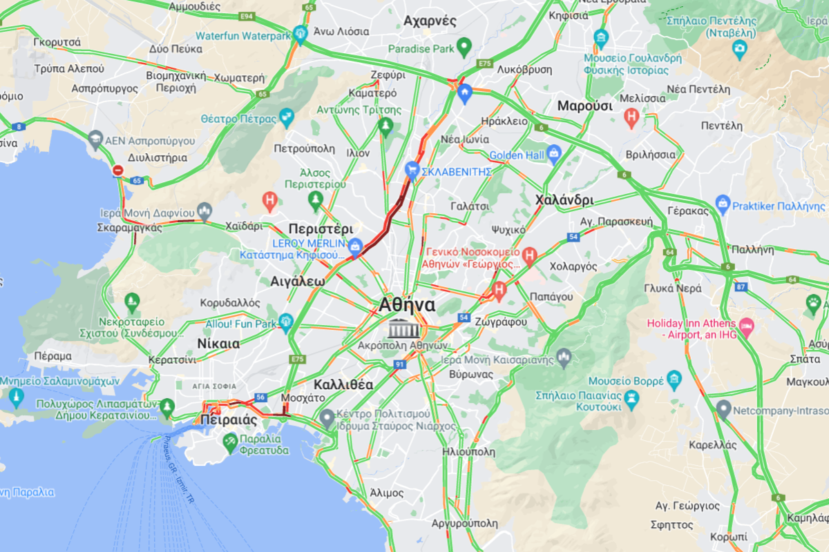 Αυξημένο μποτιλιάρισμα θα βρείτε στο λιμάνι του Πειραιά και στα δύο ρεύματα, και έξω από τα ναυπηγεία Σκαραμαγκά