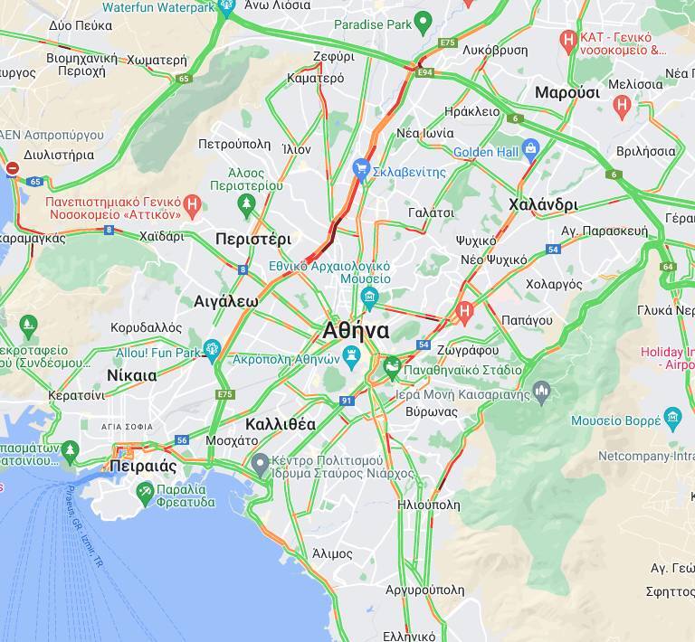 Το μεγαλύτερο πρόβλημα παρατηρείται αυτή την ώρα στον Κηφισό και στα δύο ρεύματα. Στο ρεύμα προς Κηφισιά, η κίνηση ξεκινάει από το ύψος της Λένορμαν μέχρι το ύψος της Νέας Φιλαδέλφειας. Στο ρεύμα προς Πειραιά η κίνηση ξεκινάει από το ύψος της Αττικής Οδού μέχρι την Πέτρου Ράλλη.