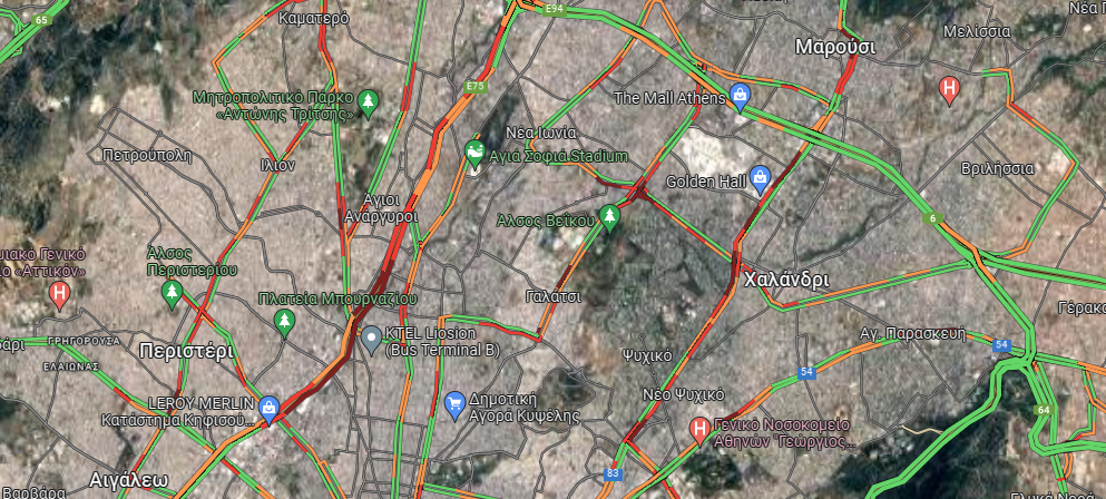 Επίσης στην άνοδο της λεωφόρου Κηφισίας υπάρχει συμφόρηση από το ύψος της Πανόρμου ως το Μαρούσι, ενώ στην κάθοδο από το Μαρούσι ως τη Φιλοθέη. Τέλος, αυξημένη είναι η κίνηση και στη λεωφόρο Βασιλέως Κωνσταντίνου.