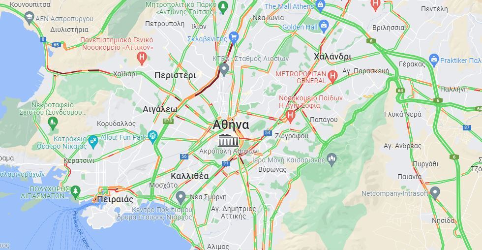 Κάντε κλικ ΕΔΩ και δείτε LIVE την κίνηση στους δρόμους της Αττικής