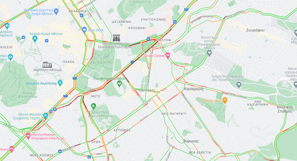 Στο «κόκκινο» είναι η κίνηση και στη Λεωφόρο Κηφισού και στα δύο ρεύματα, ενώ προβλήματα εντοπίζονται και στη Λ.Κηφισίας και στη Λ.Μεσογείων.