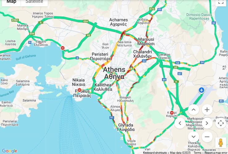Παρακάτω η κίνηση στους δρόμους από τον χάρτη της Google: