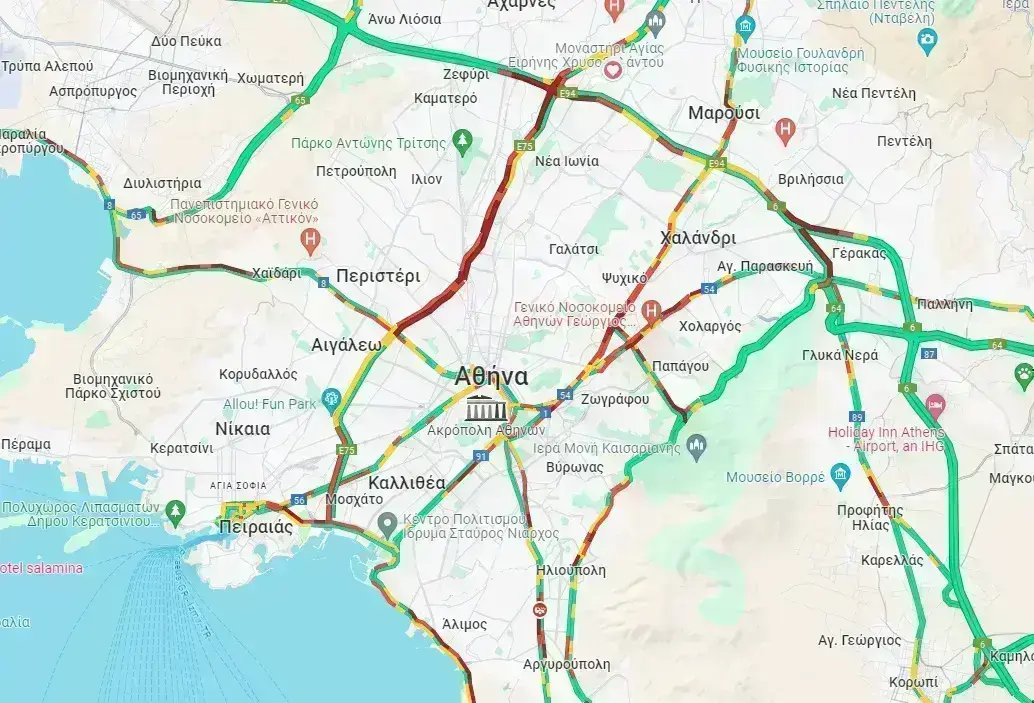 Με σοβαρά προβλήματα έως αυτήν την ώρα η κυκλοφορία στους μεγαλύτερους οδικούς άξονες του λεκανοπεδίου. Ειδικότερα, μεγάλες είναι οι καθυστερήσεις στον Κηφισό και στα δύο ρεύματα κυκλοφορίας, στην Λ. Κηφισίας, Μεσογείων και Αλίμου-Κατεχάκη.