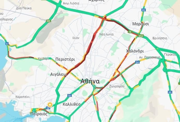 Παρόμοια εικόνα στην παραλιακή προς Πειραιά στο ύψος του Αλίμου αλλά και στην λεωφόρο Αθηνών στο ρεύμα προς Ασπρόπυργο από το ύψος του Χαϊδαρίου.