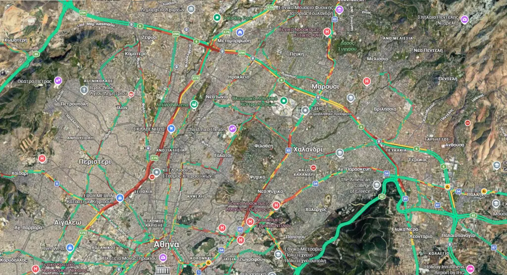 Επιβαρυμένη είναι η εικόνα και στην Αττική Οδό, με το ρεύμα προς αεροδρόμιο να παρουσιάζει καθυστερήσεις από το Ζεφύρι έως την Ηρακλείου, ενώ προς Κόρινθο προβλήματα σημειώνονται κοντά στην έξοδο προς την Εθνική Οδό. Στο κόκκινο βρίσκεται και η Αθηνών-Κορίνθου από το Χαϊδάρι έως τον Σκαραμαγκά.
