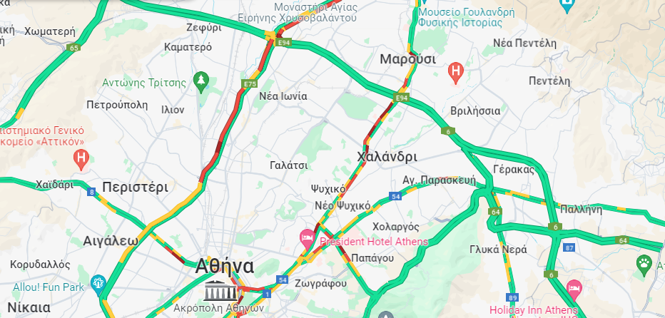 - Πολύ αυξημένη παραμένει η κίνηση στα δυο ρεύματα της Κηφισίας προς Ψυχικό