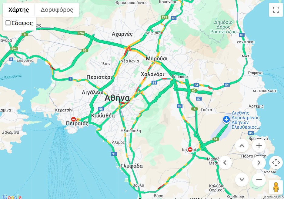 Δείτε ΕΔΩ την κίνηση από τους δρόμους της Αττικής