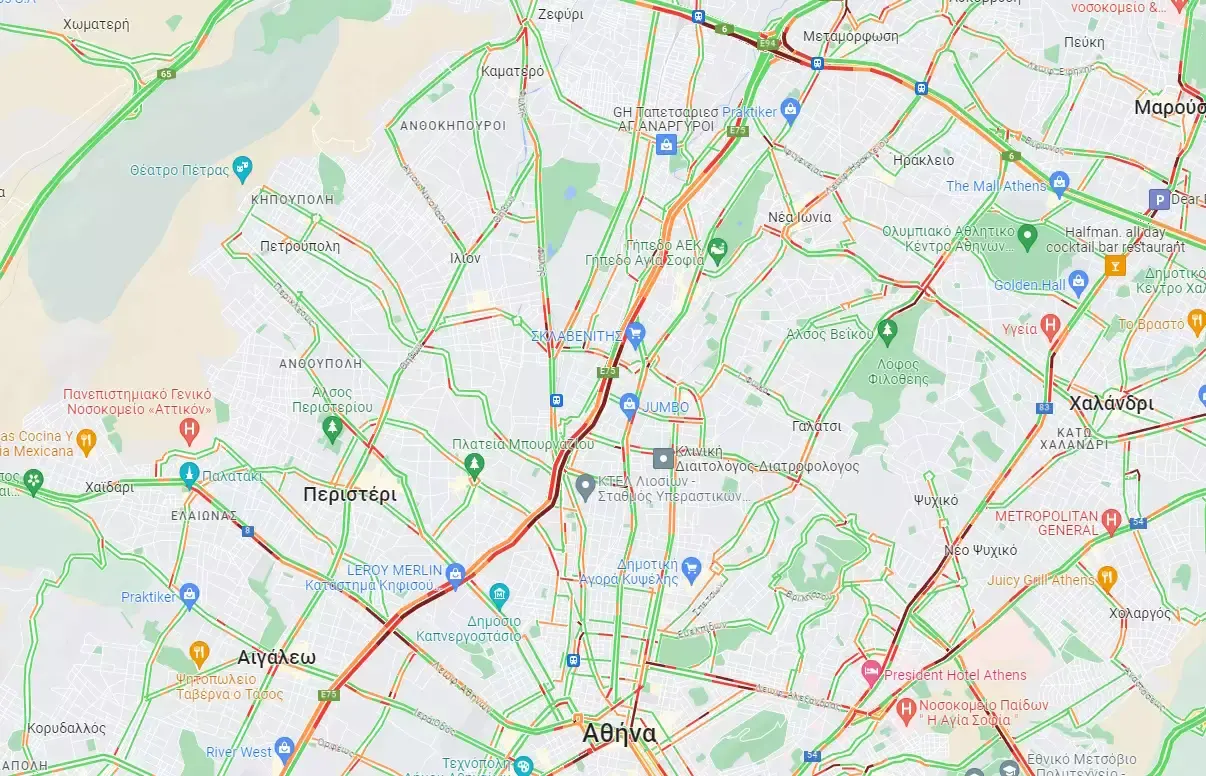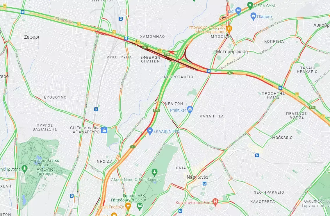Κίνηση τώρα: «Βουλιάζει» η Αττική – Χάος σε Κηφισό, Κατεχάκη, Κηφισίας και Αττική Οδό