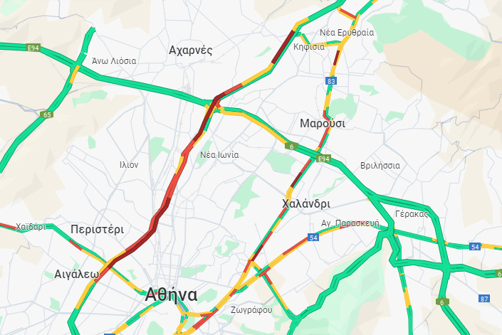 Σύμφωνα με την τελευταία ενημέρωση της Τροχαίας, αυξημένη κίνηση καταγράφεται αυτή τη στιγμή στους παρακάτω οδικούς άξονες της Αττικής:
