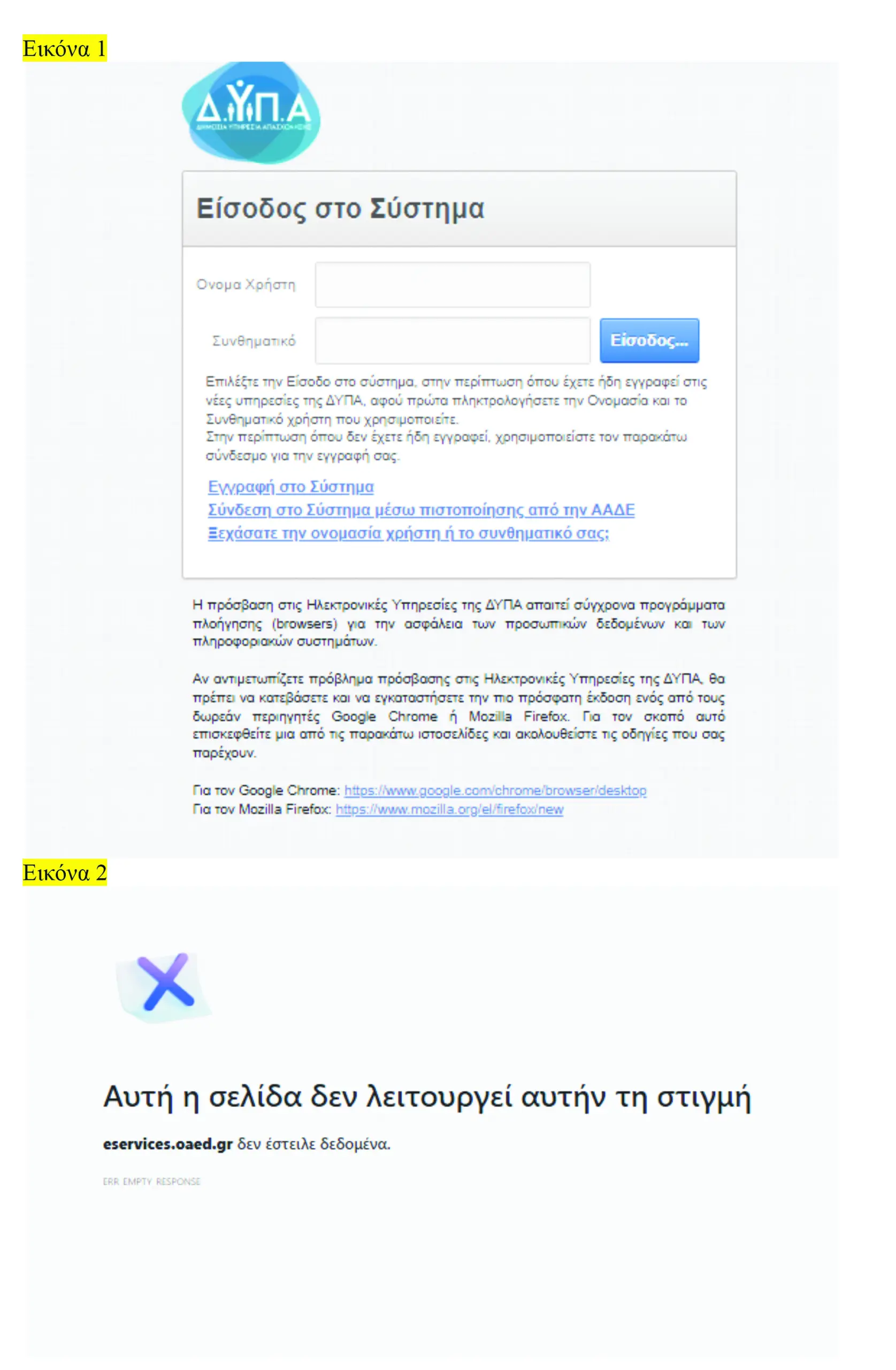 Ο «Ε.Τ» επιχείρησε χθες λίγο πριν από τις 16:00 το μεσημέρι να πραγματοποιήσει είσοδο στην πλατφόρμα της ΔΥΠΑ για την υποβολή αίτησης στο πρόγραμμα κοινωνικού τουρισμού και ιδού τι αντιμετώπισε: