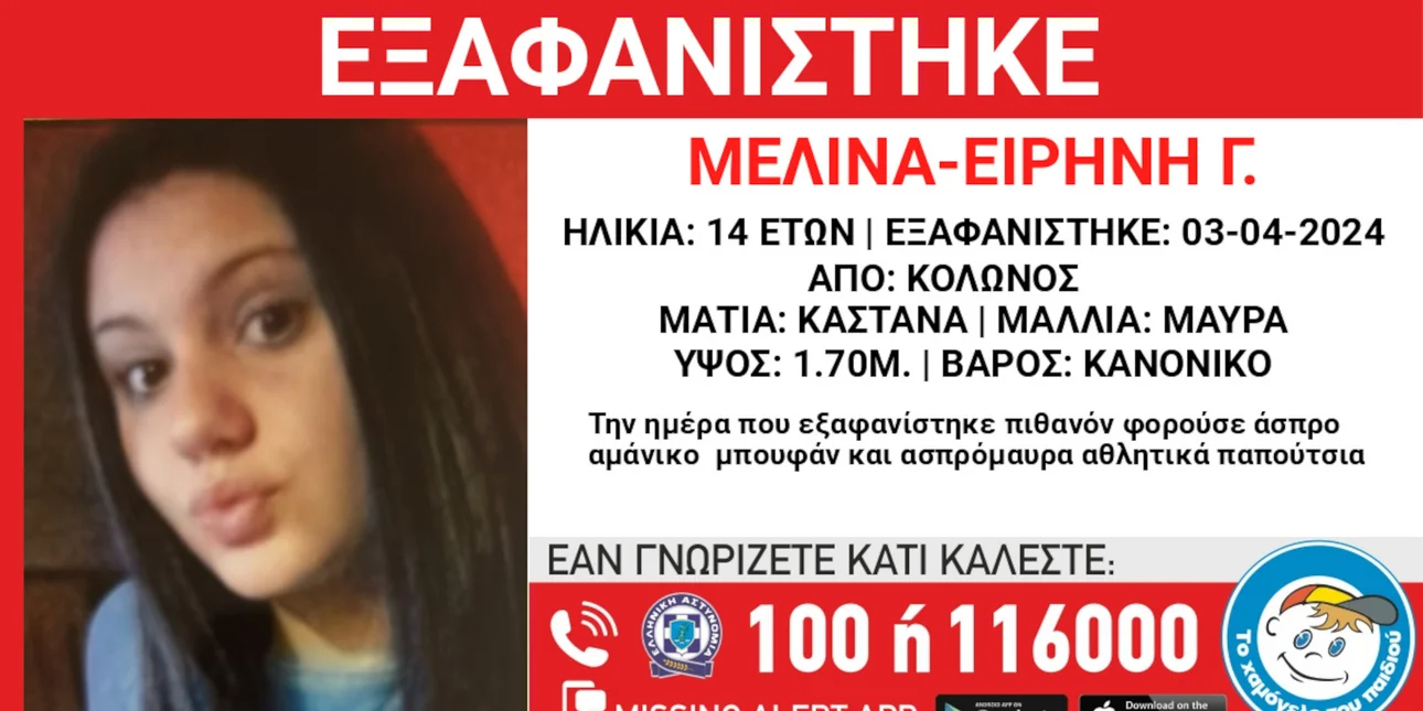 Σύμφωνα με τη σχετική ανακοίνωση από το «Χαμόγελο του Παιδιού» η 14χρονη εξαφανίστηκε στις 3.4.2024 και ώρα 16:00.