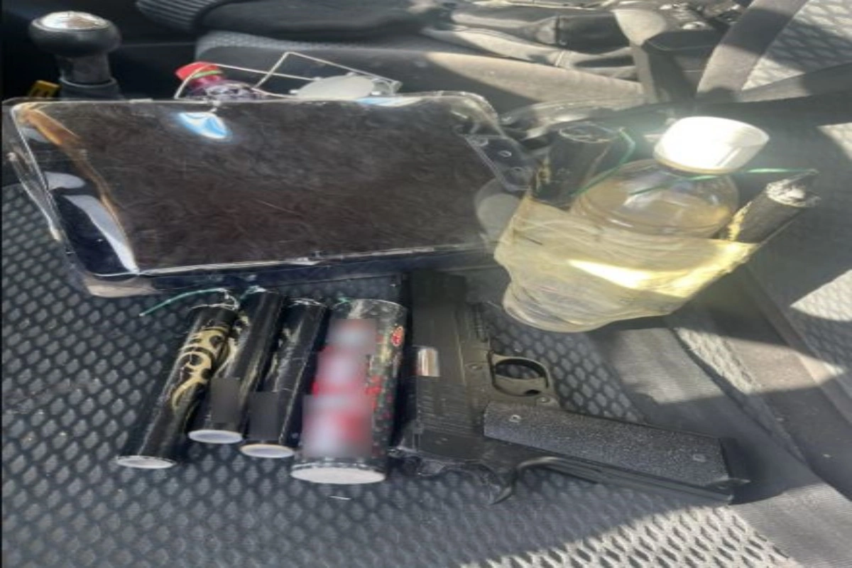 Στο εσωτερικό του οχήματος που επέβαινε, βρέθηκαν μεταξύ άλλων, αυτοσχέδιος εμπρηστικός μηχανισμός, αεροβόλο πιστόλι και τέσσερις κροτίδες.