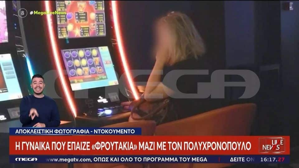 Στην φωτογραφία που παρουσίασε το LIVE NEWS φαίνεται η γυναίκα να βρίσκεται στον ίδιο χώρο με τον κ. Πολυχρονόπουλο και να παίζει και εκείνη «φρουτάκια».