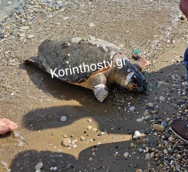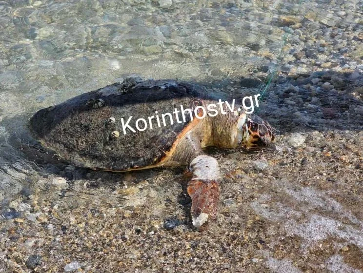 Ειδικότερα, σύμφωνα με πληροφορίες του korinthostv.gr, η μεγαλόσωμη άτυχη θαλάσσια χελώνα εντοπίστηκε νεκρή σήμερα, στην παραλία Βραχατίου.