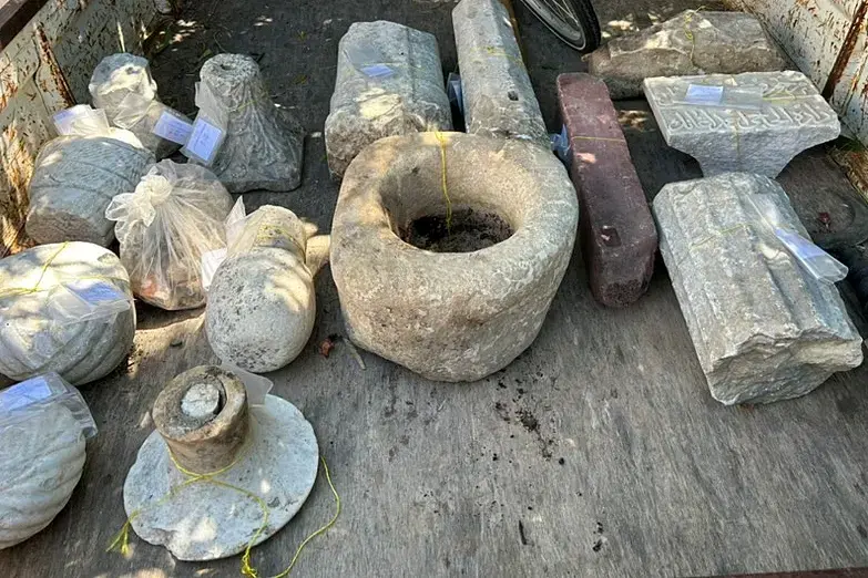 Σε έρευνα στην κατοικία των δραστών βρέθηκαν και κατασχέθηκαν, 42 τμήματα αρχαίων αντικειμένων, από τα οποία 10 εντοπίσθηκαν εντοιχισμένα ως δομικό υλικό της κατοικίας, και 163 γραμμάρια ακατέργαστη κάνναβη.