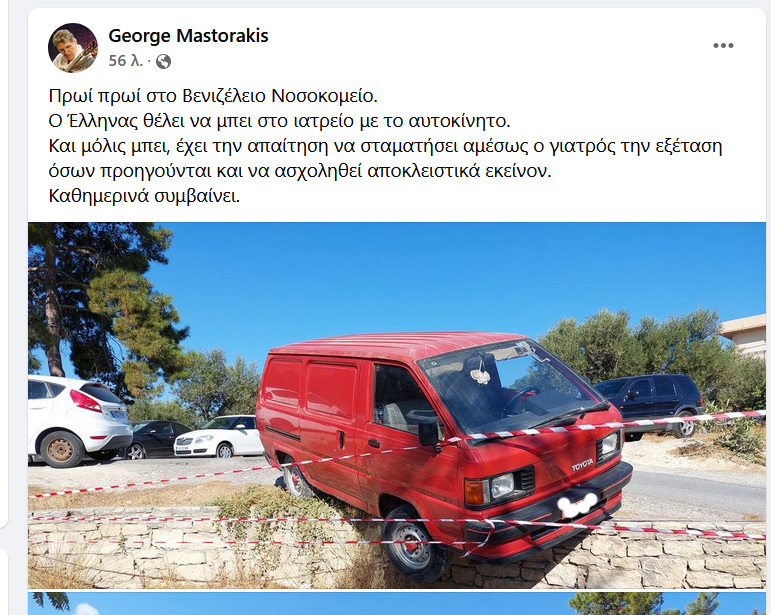 Ο Έλληνας θέλει να μπει στο ιατρείο με το αυτοκίνητο.