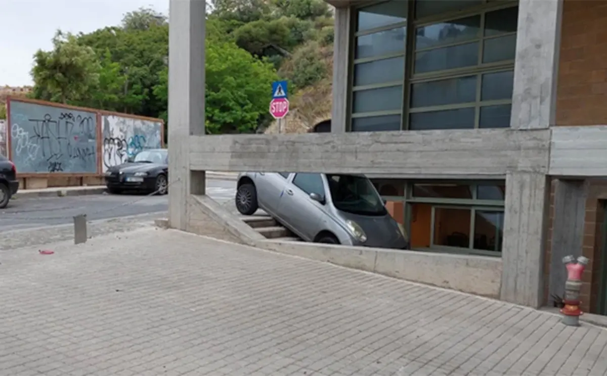 Ο άνδρας αντίκρυσε ένα αυτοκίνητο «πεσμένο» στις σκάλες.