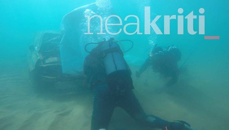 Η εικόνα είναι απόκοσμη και δεν θυμίζει τα πεντακάθαρα νερά της Αγίας Πελαγίας. Οι δύτες κινούνται ανάμεσα σε θαμμένα αυτοκίνητα, λάστιχα και ολόκληρα εμπορεύματα καταστημάτων.