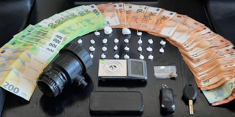 Οι αρχές κατάσχεσαν τα 20 γραμμάρια κοκαΐνης καθώς και 5.030 ευρώ σε μετρητά. Στη συνέχεια οι αστυνομικοί προχώρησαν σε έρευνα στο σπίτι του 34χρονου όπου βρήκαν και κατάσχεσαν: 2.600 ευρώ σε μετρητά, μικροποσότητα κάνναβης, ζυγαριά ακριβείας, σύνεργα για την συσκευασία και αποθήκευση κοκαΐνης, δύο καταγραφικά μηχανήματα με επτά κάμερες καταγραφής εικόνας και ήχους καθώς και τα δύο οχήματα (το ένα υπερπολυτελή) ως μέσο διακίνησης ναρκωτικών.