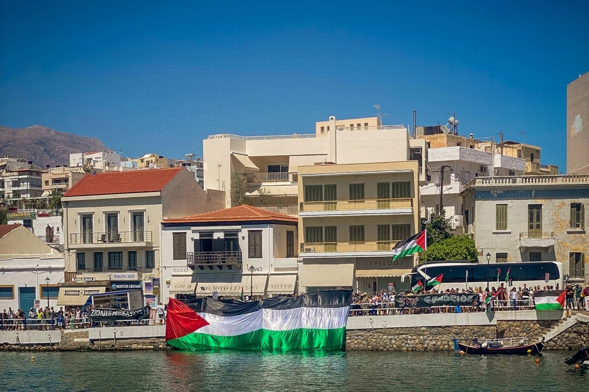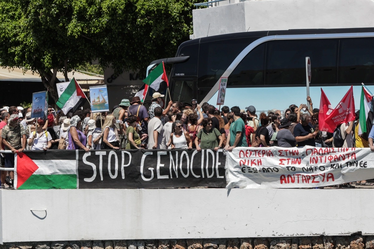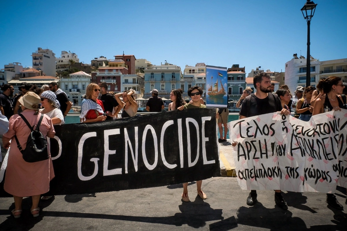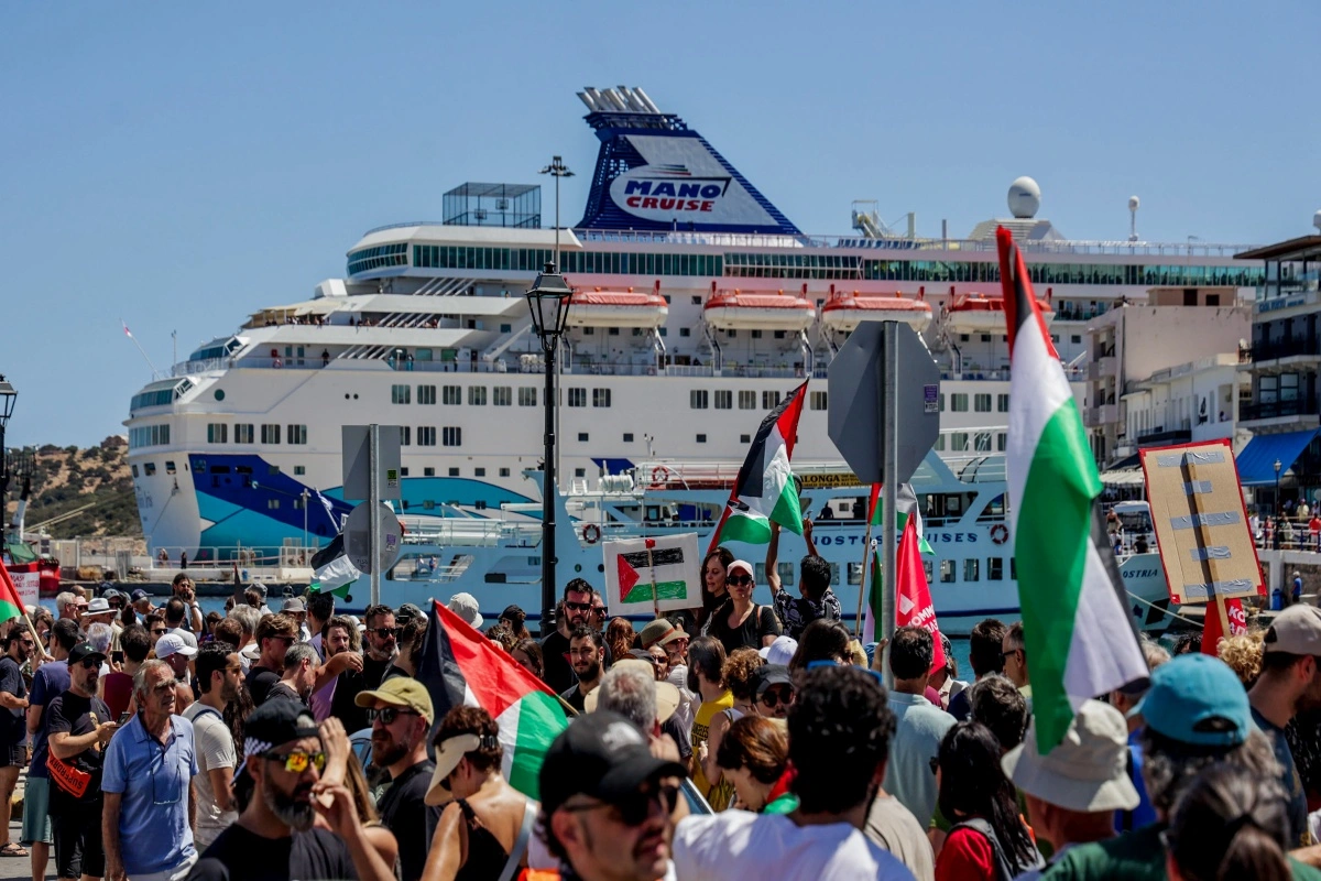 Όπως αναφέρει το ekriti, οι συγκεντρωμένοι ύψωσαν πανό και σήκωσαν τη σημαία της Παλαιστίνης, εκφράζοντας δημόσια τη συμπαράστασή τους, ενώ η Αστυνομία και το Λιμενικό βρίσκονταν σε αυξημένη επιφυλακή για την ομαλή αποβίβαση των επιβατών και την ασφαλή διεξαγωγή της διαμαρτυρίας. Για τον σκοπό αυτό, είχαν ενισχυθεί οι δυνάμεις ασφαλείας στον Άγιο Νικόλαο με προσωπικό από διάφορες περιοχές της Κρήτης.