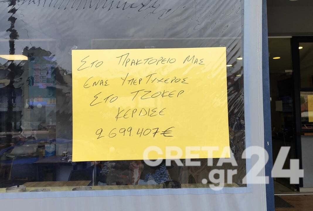 Ο Ηρακλειώτης κέρδισε 100.000 ευρώ και το δελτίο είχε παιχτεί σε πρακτορείο ΟΠΑΠ επί της 25ης Αυγούστου, με απλή συμμετοχή