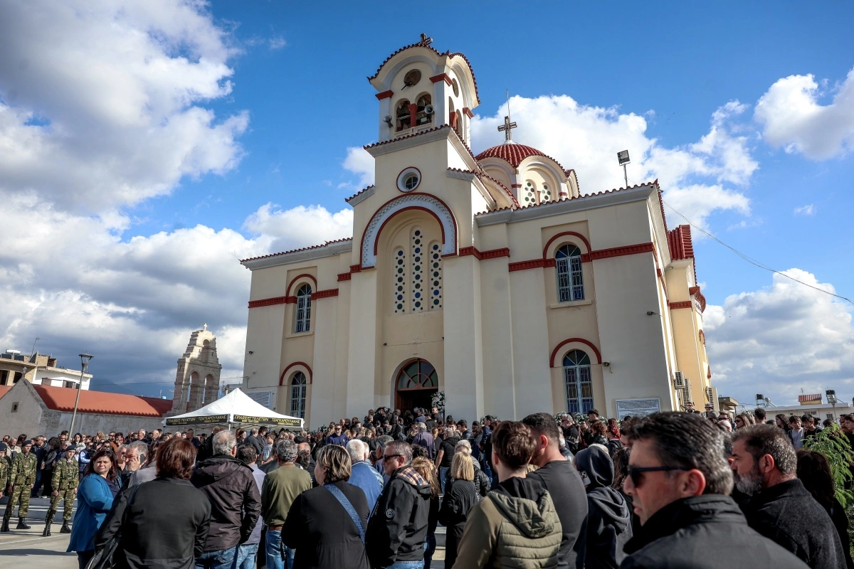 Έξω από τον Ιερό Ναό βρίσκεται στρατιωτικό άγημα για την απόδοση τιμών στον 19χρονο Ραφαήλ.
