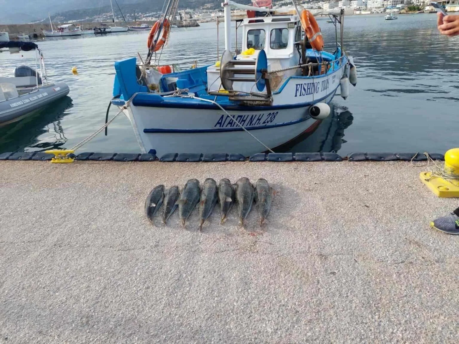 Μάλιστα, το αλιευτικό «Έκτορας», κοντά στην περιοχή Κοκκίνη Χάνι, ανάμεσα στο μισό τόνο λαγοκέφαλους, αλίευσε, όπως είπε στην ΕΡΤ ο ίδιος και κάποιους υπερμεγέθεις, ο μεγαλύτερος εκ των οποίων προσέγγιζε σε μήκος το ένα μέτρο και σε βάρος τα 15 κιλά.