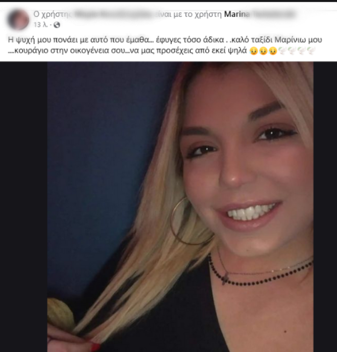 Η είδηση θανάτου της νεαρής γυναίκας, σκόρπισε απέραντη θλίψη σε όλους όσους την γνώριζαν, με τα μηνύματα για τον θάνατο της να σπαράζουν.