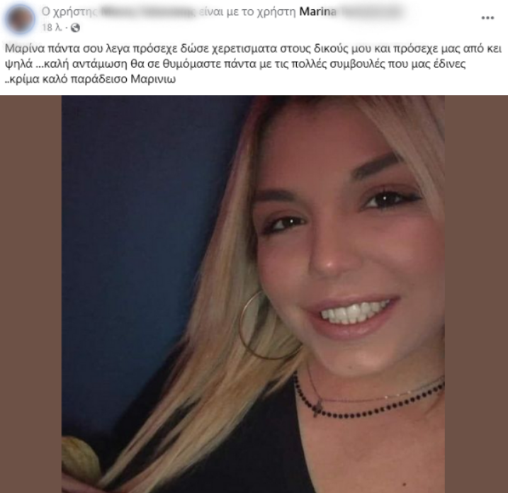 Η 26χρονη Μαρίνα, μητέρα ενός μικρού αγοριού, έχασε -όπως έγραψε το Cretalive- τα ξημερώματα τη ζωής της, σε δυστύχημα στον ΒΟΑΚ, κοντά στο Κακό Όρος.