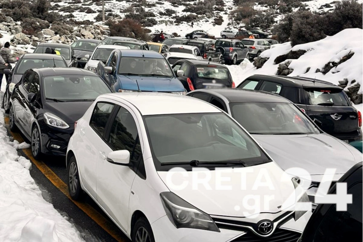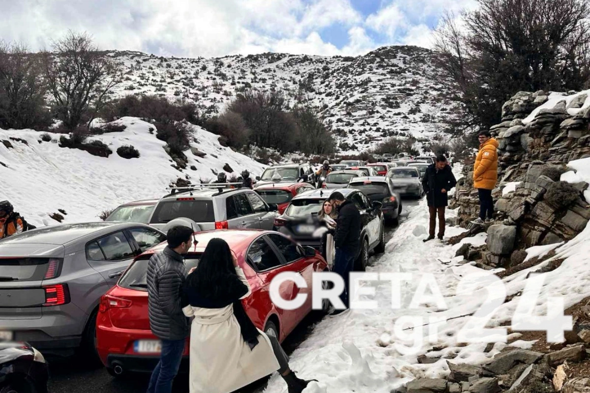 Σύμφωνα με το creta24.gr, τα αυτοκίνητα που ανέβαιναν το ένα μετά το άλλο «κόλλησαν» μετά τη Ζώμινθο, όχι λόγω χιονιού αλλά λόγω κίνησης.