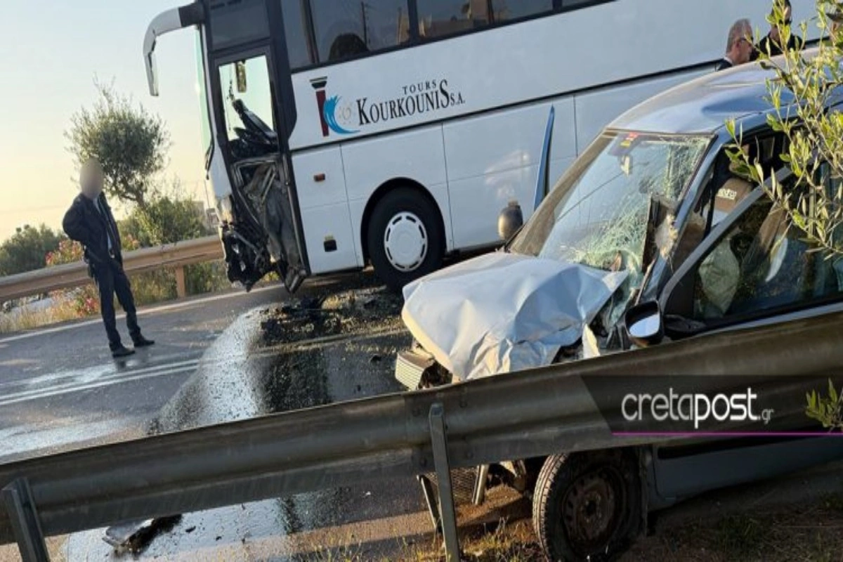 Σύμφωνα με πληροφορίες του cretapost, όλα συνέβησαν χθες λίγο μετά τις 7 το απόγευμα στην παλαιά εθνική οδό στο ύψος των Γουβών, λίγο μετά τον κόμβο, ένα τουριστικό λεωφορείο συγκρούστηκε με αυτοκίνητο.