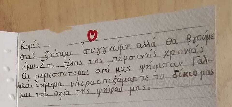 Χαρακτηριστικό είναι το μήνυμα που έγραψαν οι μαθητές στην δασκάλα των γαλλικών, ζητώντας της συγγνώμη: