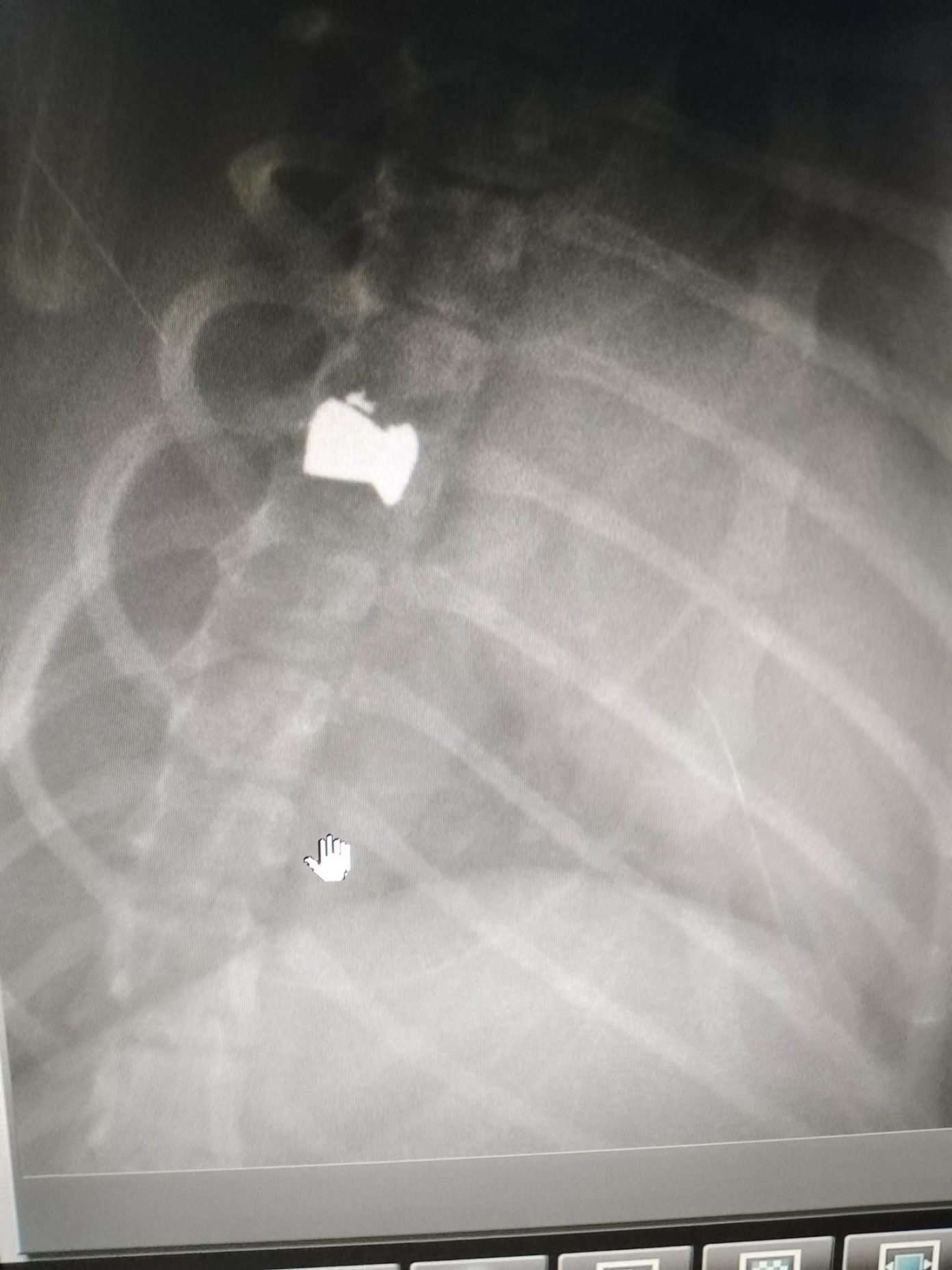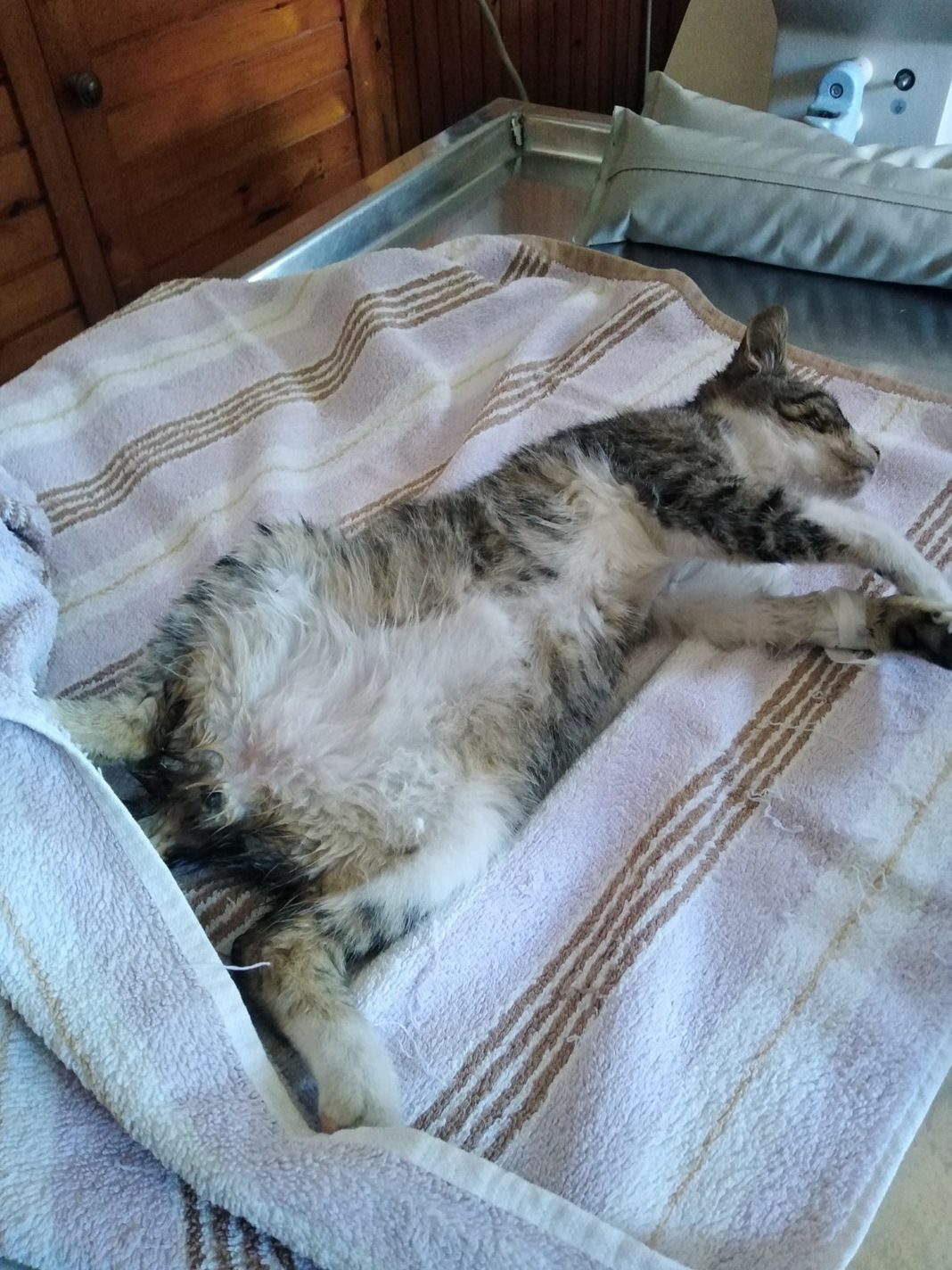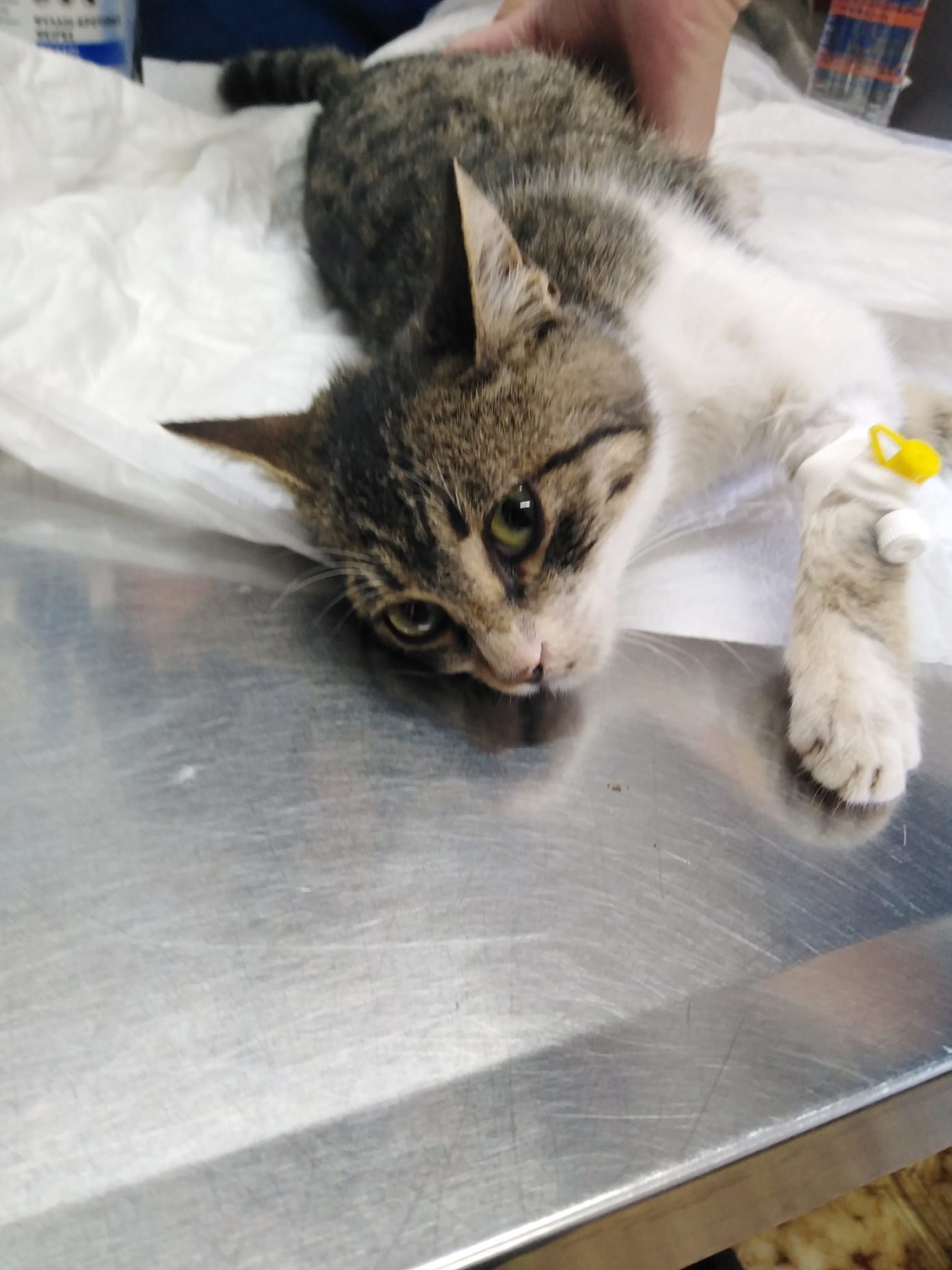 Οι άνθρωποι της Φιλοζωϊκής μετέφεραν το ανήμπορο γατάκι στην κτηνίατρο κα Βαλυρακη και από τις ακτινογραφίες, διαπιστώθηκε ότι είναι πυροβολημένο με αεροβόλο.