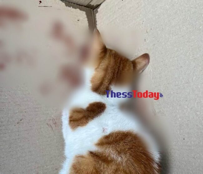 Το δύστυχο γατάκι βρέθηκε αιμόφυρτο στο πάρκινγκ από περαστικό, ο οποίος το μετέφερε στον κτηνίατρο και ενημέρωσε τη φιλοζωική.