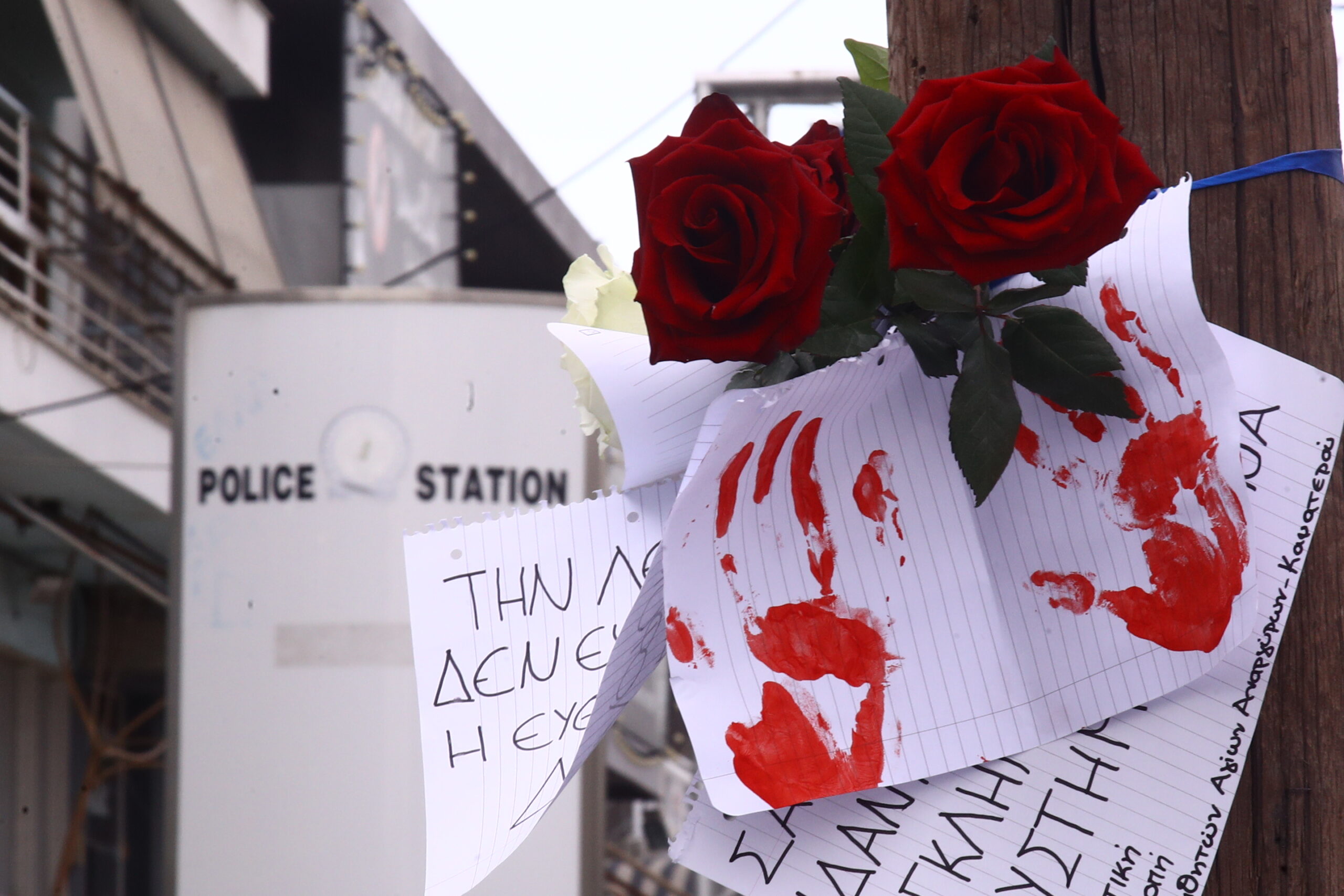 «Με λένε Κυριακή Γρίβα και με δολοφόνησε ο πρώην σύντροφός μου στο Αστυνομικό Τμήμα Αγίων Αναργύρων στις 22:20 την 1/4/2024. Σε ηλικία 28 ετών. Δούλευα… Και ότι έβγαζα το ξόδευα για σένα και σου έδινα τα πάντα για να σε βλέπω ευτυχισμένο και εσύ με σκότωσες με πέντε μαχαιριές πισώπλατα… Γιατί Θανάση; Τι σου έκανα;», γράφει το μνημείο της Κυριακής.
