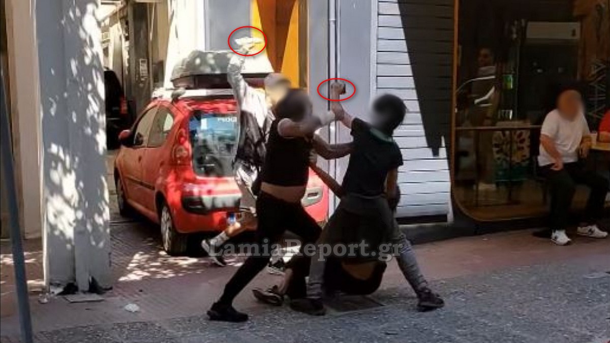 Δύο Ρομά σύμφωνα με το lamiareport, γρονθοκοπούνται με δύο άλλους, ενώ υπάρχει και κάποιος, που φοράει άσπρη μπλούζα, ο οποίος κάνει ότι μπορεί για να τους χωρίσει, βάζοντας σε κίνδυνο τη σωματική του ακεραιότητα.