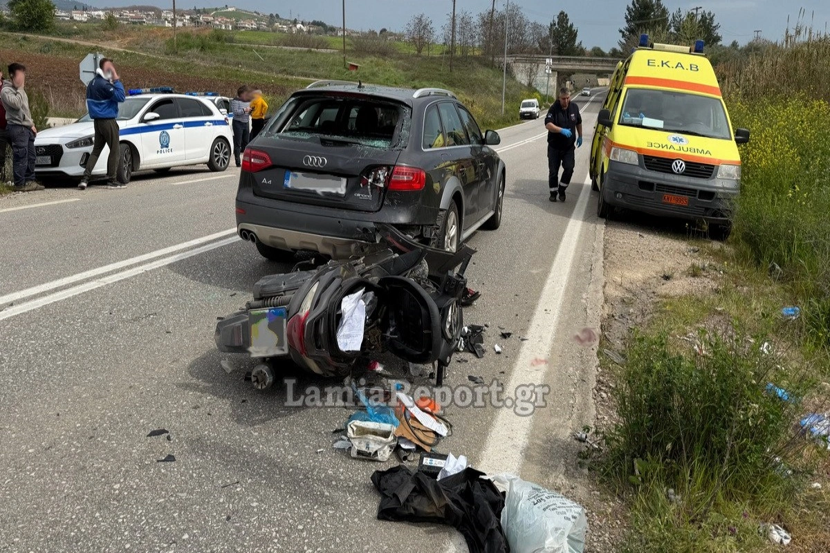 Σύμφωνα με το LamiaReport, μπροστά από το δίκυκλο κινούνταν ένα αγροτικό όχημα και το αυτοκίνητο πάνω στο οποίο έπεσε το μηχανάκι.