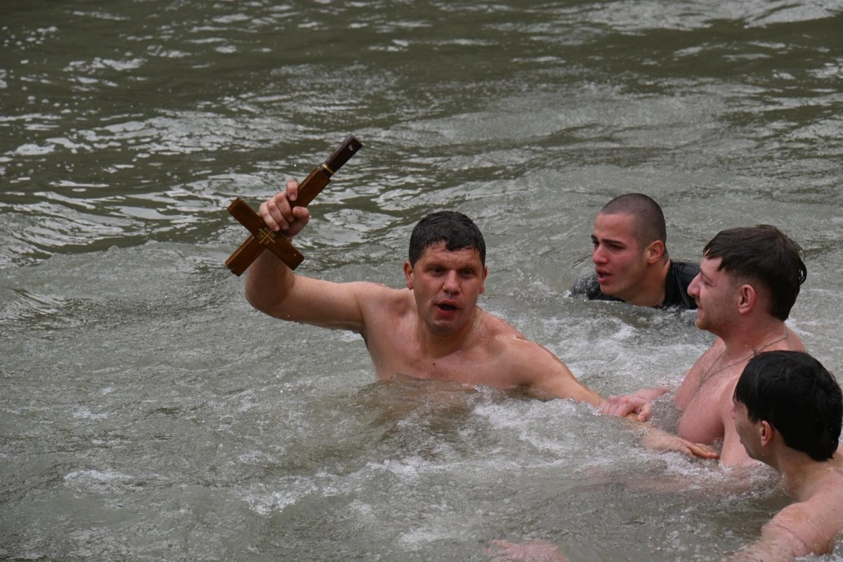 Αρκετοί ήταν οι τολμηροί που βούτηξαν στα παγωμένα νερά του ποταμού για τον Σταυρό, τον οποίο έπιασε ο 43χρονος Χρήστος Αϊβαλής, αστυνομικός στο επάγγελμα που κατάγεται από την Καλαμάτα και υπηρετεί στην Αθήνα. «Καλή φώτιση, ειρήνη και υγεία σε όλο τον κόσμο» ευχήθηκε εξηγώντας πως έπεσε στα νερά διότι περιμένει τρίτο παιδί και θέλει όλα να πάνε καλά.