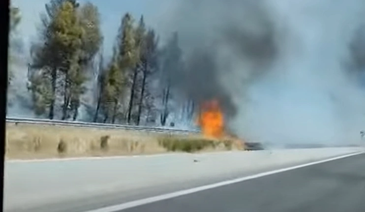 Στην περιοχή επιχειρούν 18 πυροσβέστες με 9 οχήματα, ενώ και τα δύο ρεύματα της Εθνικής Οδού λειτουργούν κανονικά.