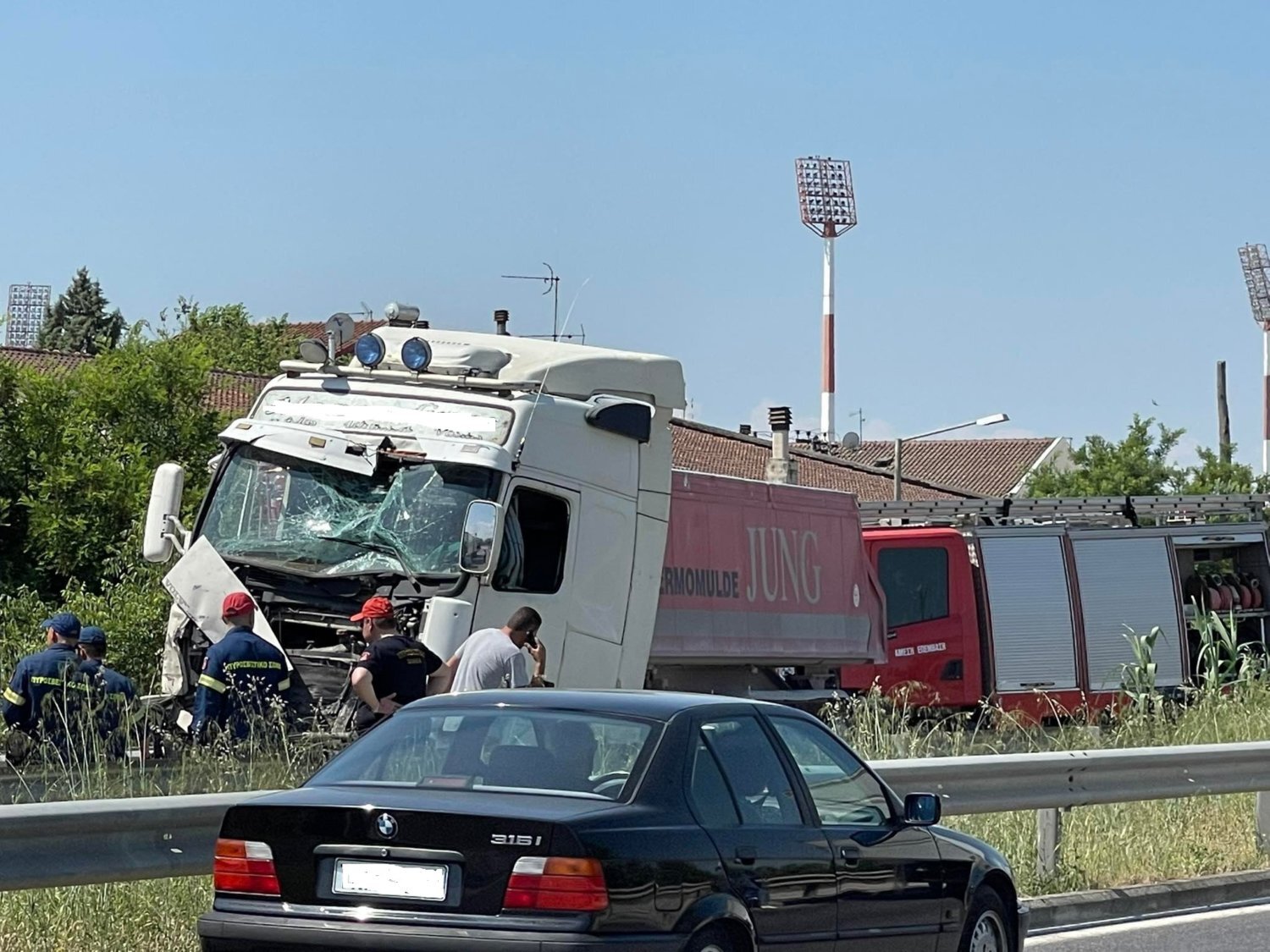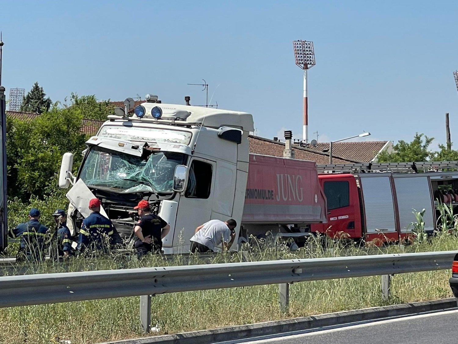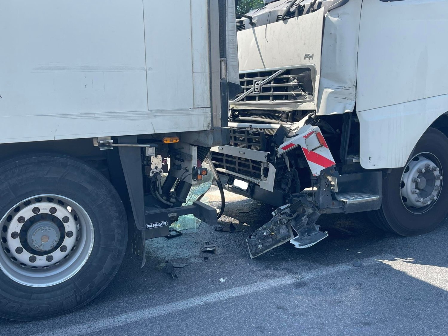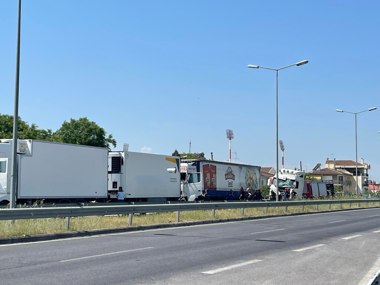 Σημειώνεται ότι στο σημείο έχουν τεθεί σε ισχύ κυκλοφοριακές ρυθμίσεις μέχρι να απομακρυνθούν τα εμπλεκόμενα φορτηγά.