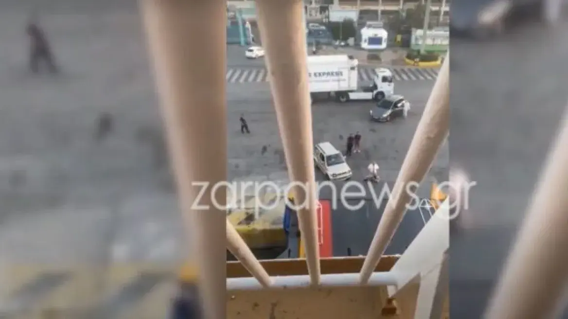Όπως φαίνεται στην εικόνα που δημοσίευσε το zarpanews.gr, ο άνδρας είναι γαντζωμένος από τον καταπέλτη. Ωστόσο η προσπάθεια ήταν μάταιη καθώς δεν τα κατάφερε, σκόνταψε και έπεσε πάνω στην προβλήτα του λιμανιού.