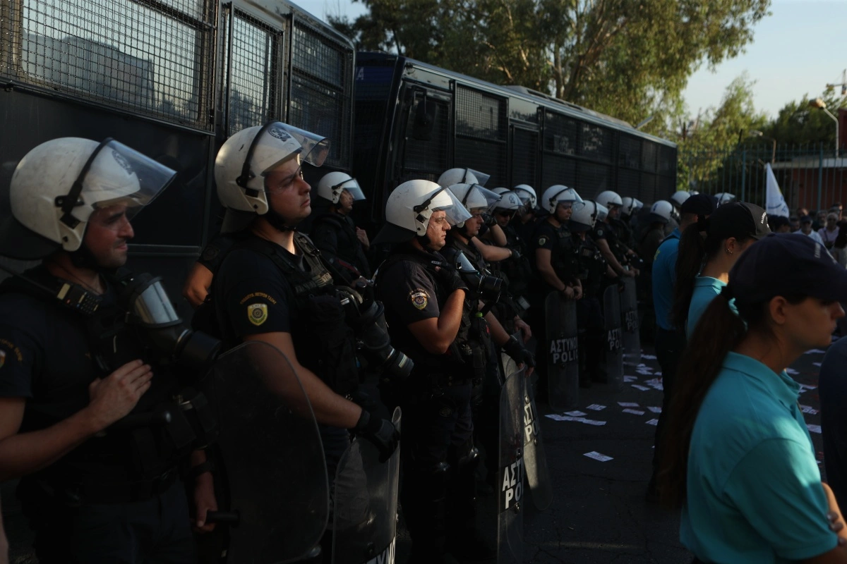 Στην περιοχή έχει αναπτυχθεί ισχυρή αστυνομική δύναμη, με κλούβες των ΜΑΤ να σχηματίζουν φραγμό μπροστά στην πύλη 12, ώστε να εξασφαλιστεί η πρόσβαση και η ασφαλής αποβίβαση των Ισραηλινών τουριστών.