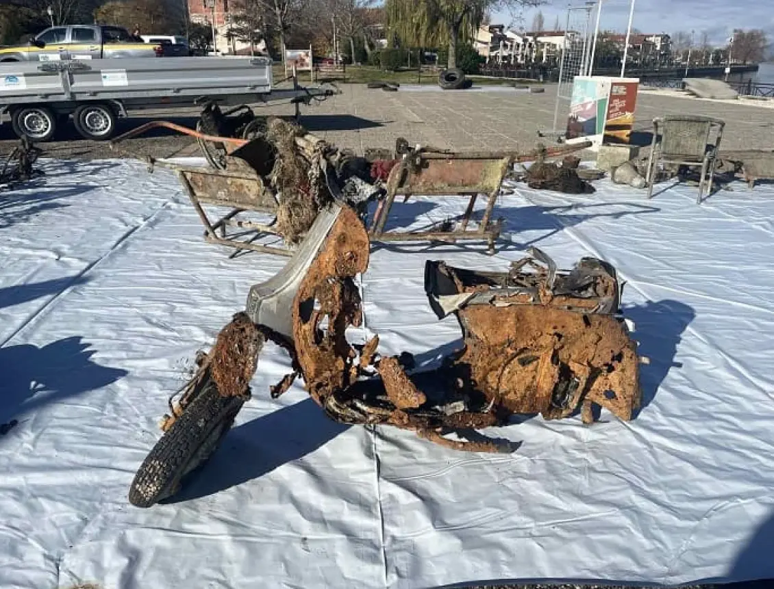 Στα ευρήματα του υποβρύχιου καθαρισμού καταγράφονται: μοτοσικλέτες, φωτιστικά, ποδήλατα, αλουμίνια, πλαστικά, ελαστικά, τραπέζια, πλαστικές και μεταλλικές καρέκλες, στρατιωτικά κράνη, όλμοι και οβίδες.
