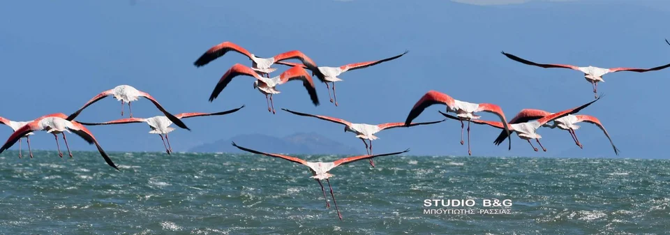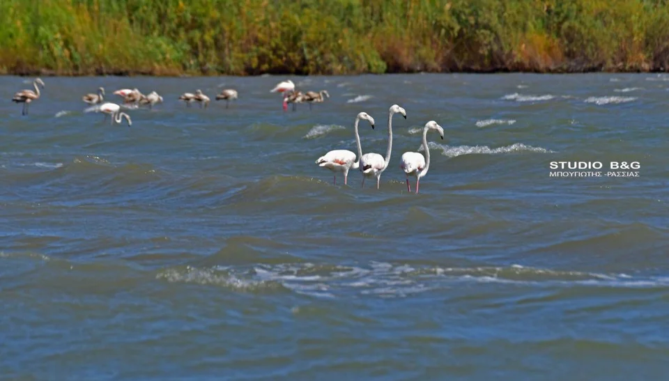 Περίπου σαράντα φλαμίνγκο αφίχθησαν με χάρη και ηρεμία στα ρηχά νερά της περιοχής, αναζητώντας τροφή και ξεκούραση σε έναν φυσικό βιότοπο μεγάλης σημασίας.