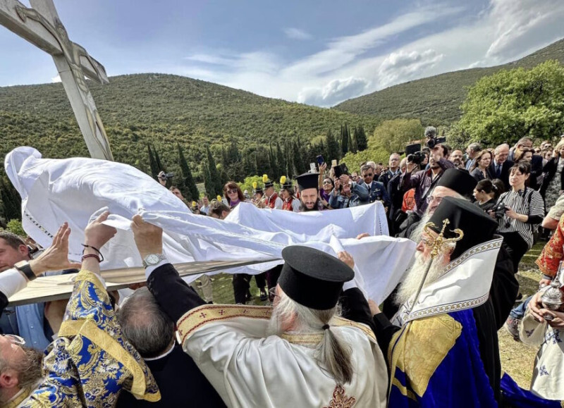 Πιστοί στο ραντεβού τους σήμερα, πλήθος πολιτών που βρέθηκε εκεί, ανάμεσά τους βουλευτές, δήμαρχοι και εκπρόσωποι των Σωμάτων Ασφαλείας, ενώ την αποκαθήλωση τέλεσε ο Μητροπολίτης Δημητριάδος Ιγνάτιος.