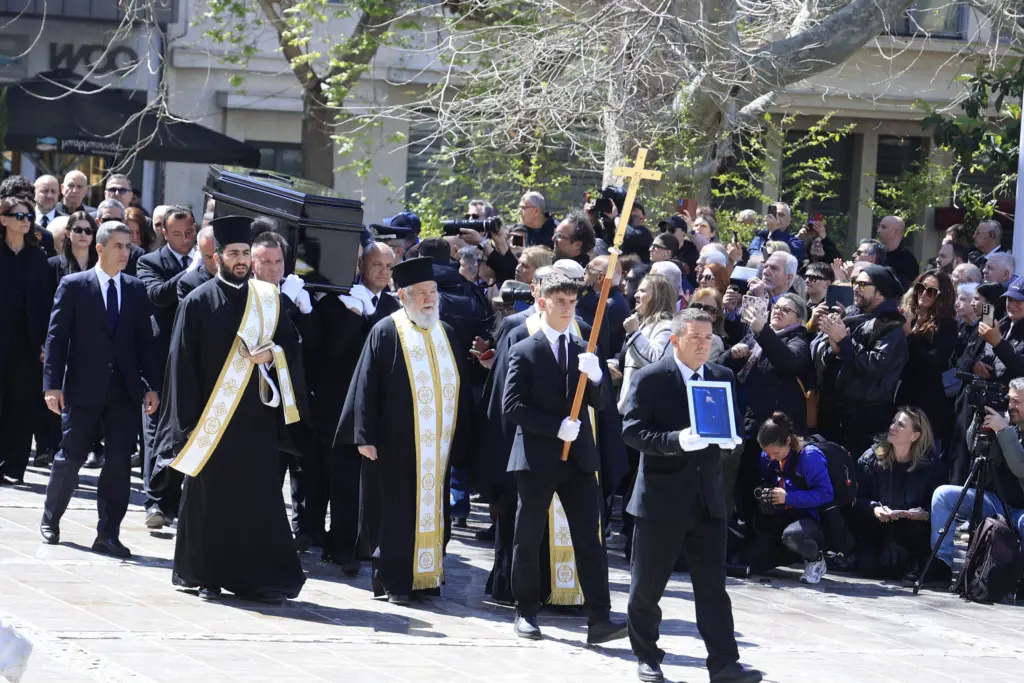 Λίγα λεπτά μετά τις 13.00 η σορός μεταφέρθηκε στη Μητρόπολη, ενώ στις 14.00 ξεκίνησε η νεκρώσιμος ακολουθία. Η ταφή έγινε σε στενό κύκλο, μακριά από τα φώτα.