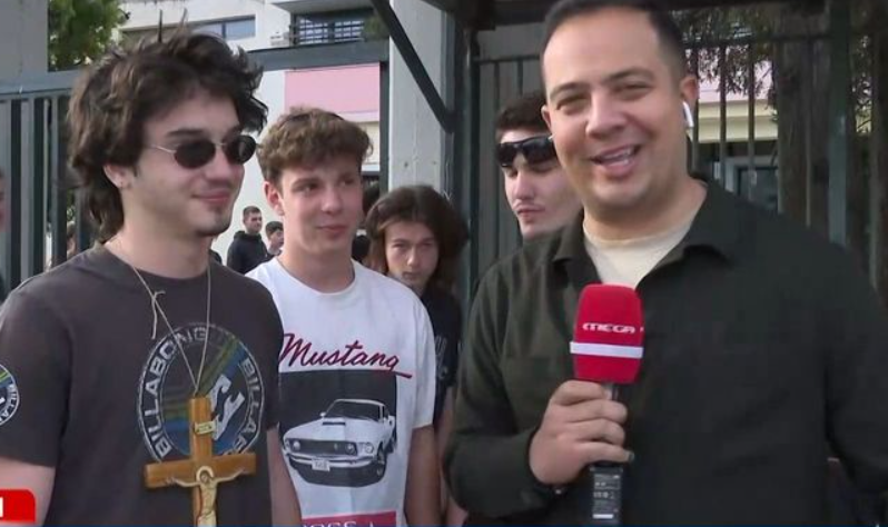 «Το μέγεθος μετράει, ένας μεγάλος σταυρός, μια μεγάλη πίστη, μεγάλη ετοιμότητα για τις Πανελλαδικές. Βοηθάει», λέει ένας μαθητής από τη Θεσσαλονίκη, ο οποίος εμφανίστηκε στο εξεταστικό κέντρο με έναν τεράστιο σταυρό στο στήθος.