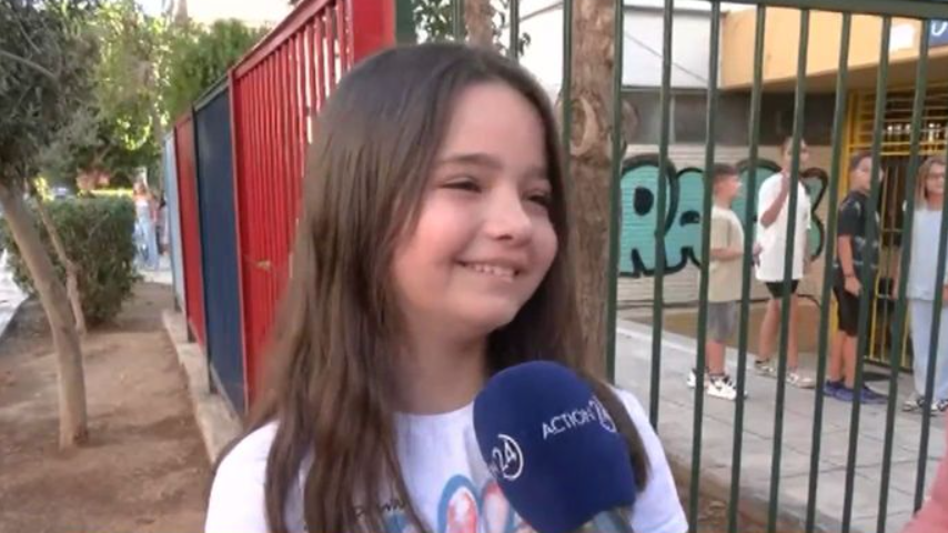 Μιλώντας στην κάμερα του Action 24 που βρέθηκε στο 5ο Δημοτικό Σχολείο στο Αιγάλεω, η μικρή Ελισάβετ, λίγο πριν χτυπήσει το κουδούνι, εξήγησε ότι έχει αγωνία για τη νέα σχολική χρονιά.