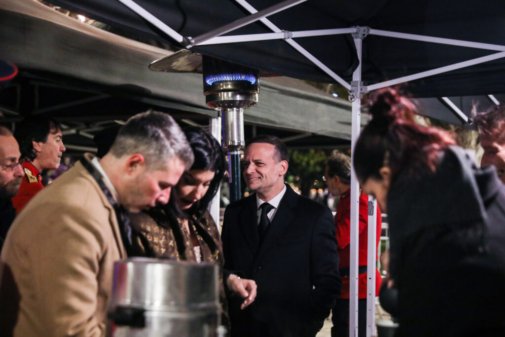 Όταν έφτασε η ώρα για την αλλαγή του χρόνου, ο δήμαρχος Αθηναίων Χάρης Δούκας ανέβηκε στη σκηνή της πλατείας, ευχήθηκε για τη νέα χρονιά, μίλησε για «την Αθήνα που ενώνει» και μαζί με τους καλλιτέχνες έκανε την αντίστροφη μέτρηση για τον ερχομό του 2026.